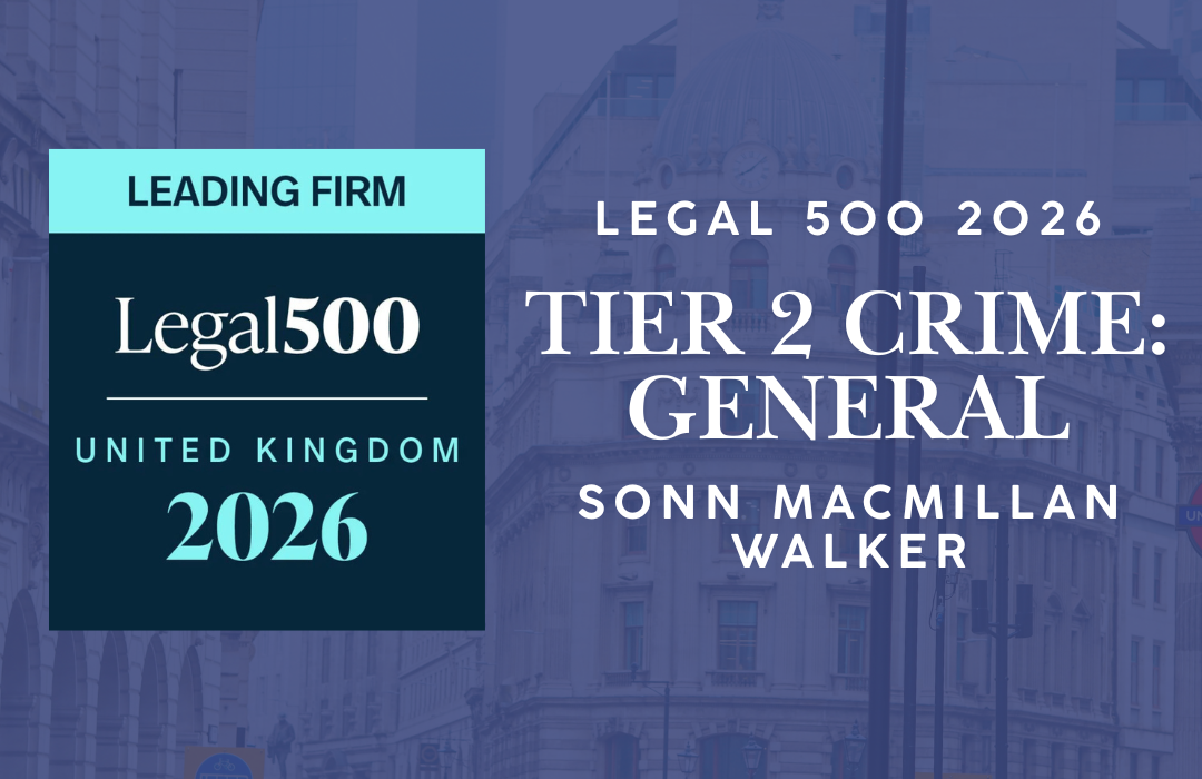 Sonn Macmillan Walker Maintains Tier 2 Ranking in Legal 500 for Crime
