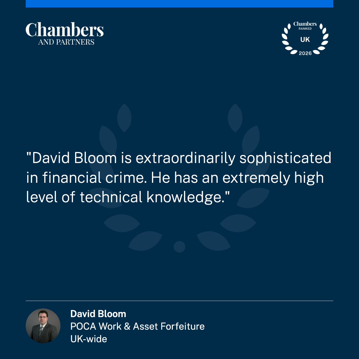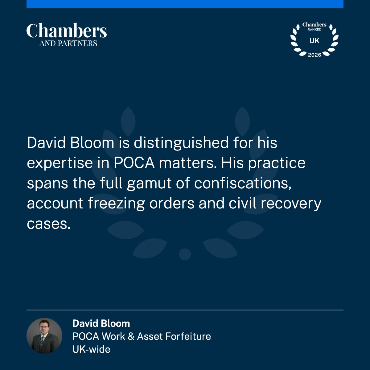 David Bloom Ranked Band 3 in Chambers and Partners 2026 for POCA and Asset Forfeiture