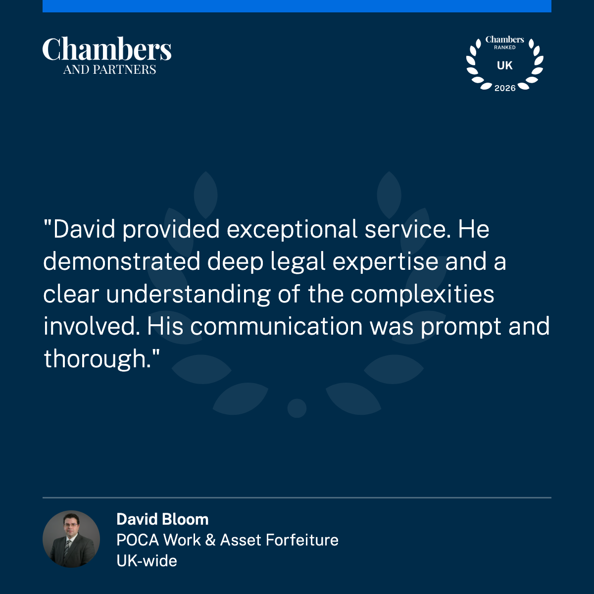 We’re proud to announce that David Bloom has been newly ranked in Band 3 for POCA Work and Asset Forfeiture in the Chambers and Partners 2026 guide – a significant recognition of his growing influence in one of the most technical and high-stakes areas of criminal law.